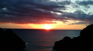 朝風呂も堪能。夜中の豪雨が嘘のように晴れてきて、夕日が期待できそうな予感?