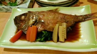 二日目の宿は金目の煮付けと海老をメインに堪能。前菜的なすき焼きが結構お腹にたまり、ちと量が多くてすぐにお風呂に行けないくらい食べ過ぎました。