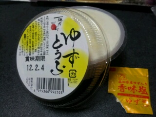 ゆず豆腐です。豆腐の中に柚が練り込まれてました。